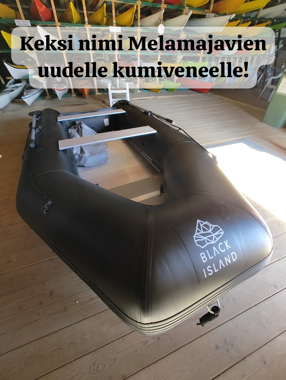 Ehdota nimeä kumiveneelle 3.5.2026 mennessä. Ehdotuksen voit joko jättää vajalle tiskillä olevaan pahvilaatikkoon, ehdottaa sitä Whatsapin Ilmoitustaulu-ryhmässä tai lähettä viestillä Emmille emmi@melamajavat.fi tai Maijulle maiju@melamajavat.fi